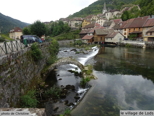 Dimanche, comme la météo prévoyait des averses, nous avons un peu écourté le parcours, mais nous avons pu admirer l'essentiel, la magnifique source de la Loue et la cascade du Grand Saut. Un pique-nique à l'abri, puis une éclaircie nous a permis ensuite de visiter le village de Lods.
