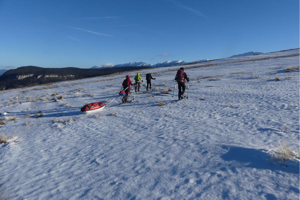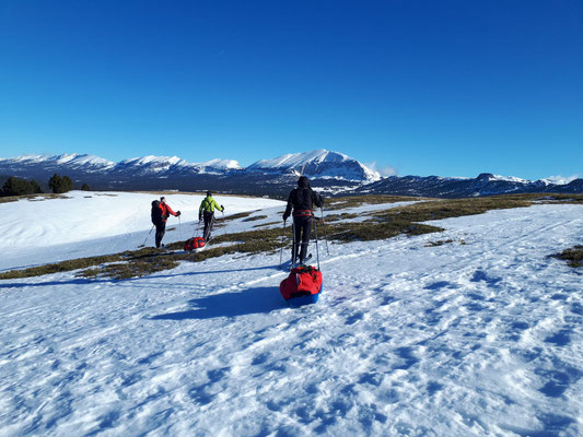 Vassieux - Col du Rousset - Cabane de Chaumailloux - Gîte des Lieutards - Cabane de Pré Grandu - Corrençon-en-Vercors - La Chapelle-en-Vercors en 6 étapes (J2/J3 avec pulka-bivouac)